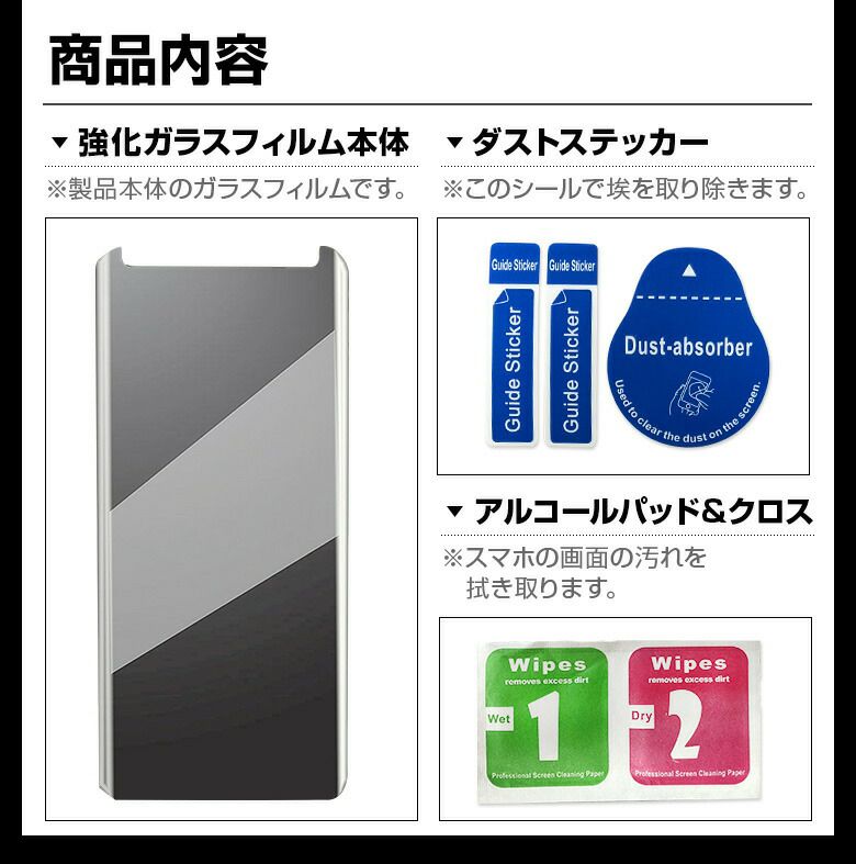 ガラスフィルム1枚 カラー:黒 ウェットクロス 埃取りシールセット