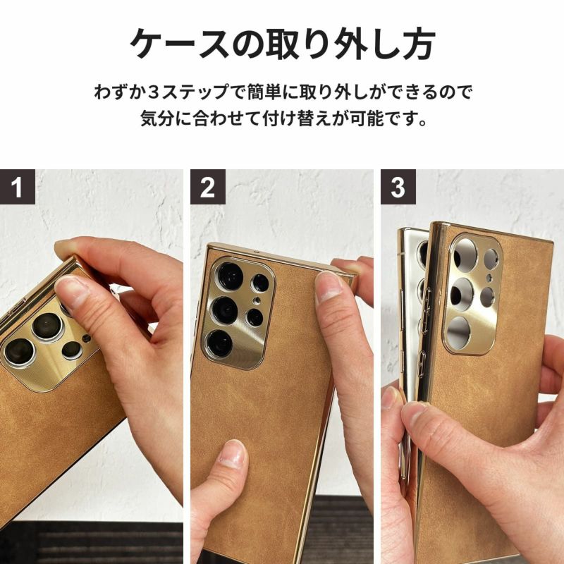 スマートフォンケースは、背面には高品質なPUレザーを使用し、上品な印象を与えます。