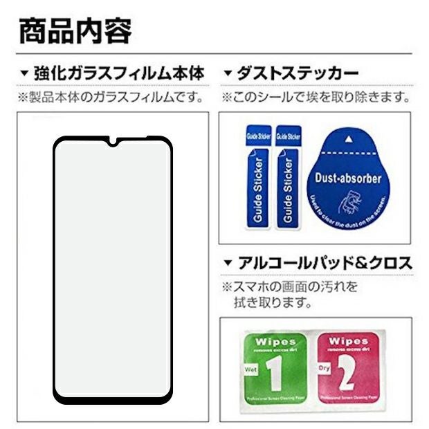 スマートフォンに貼り付け ガラスフィルム + 埃取りクロス シール セット ※30日間の安心保証サービス