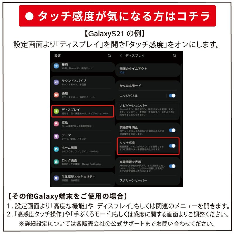 ※ガラスフィルムは画面保護を目的とした製品設計となり [指紋認証に対応しておりません。] 指紋認証機能をメインにご使用をご検討の方には ウレタンTPUフィルムを推奨しております。
