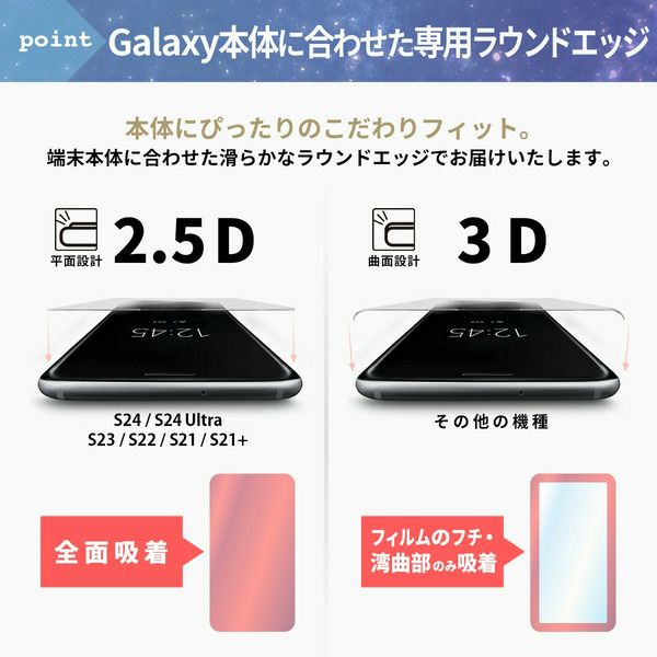 Galaxyの最新版フラット加工にも対応フィルム 1枚1枚が Galaxy 本体 の機種別設計となっており、
