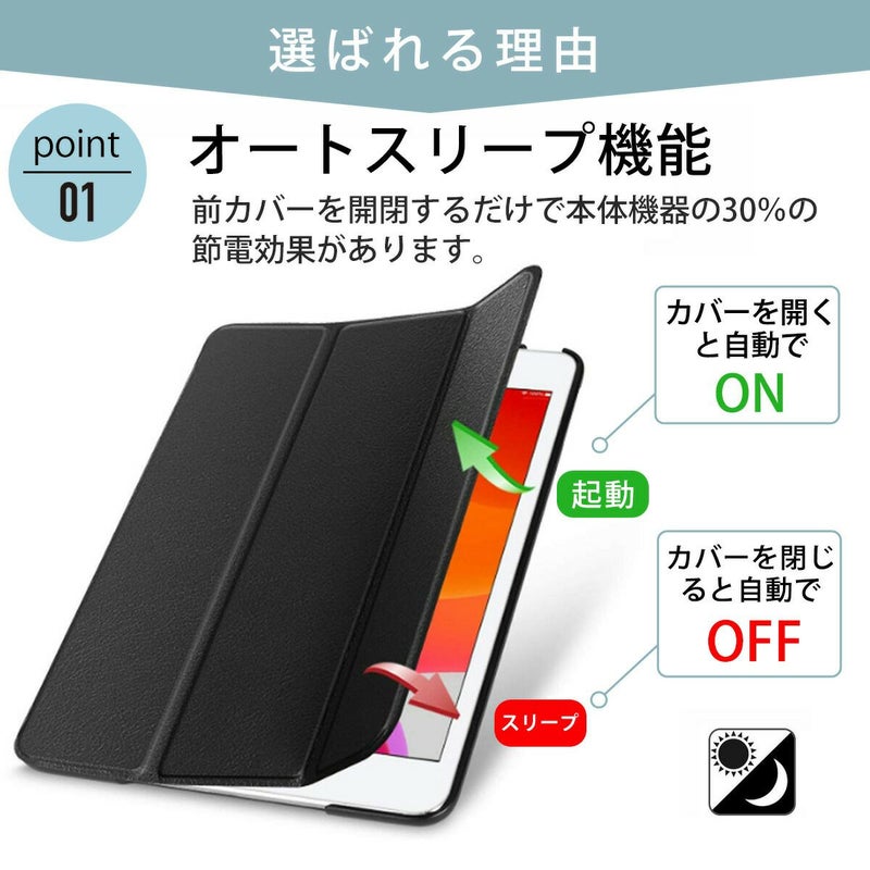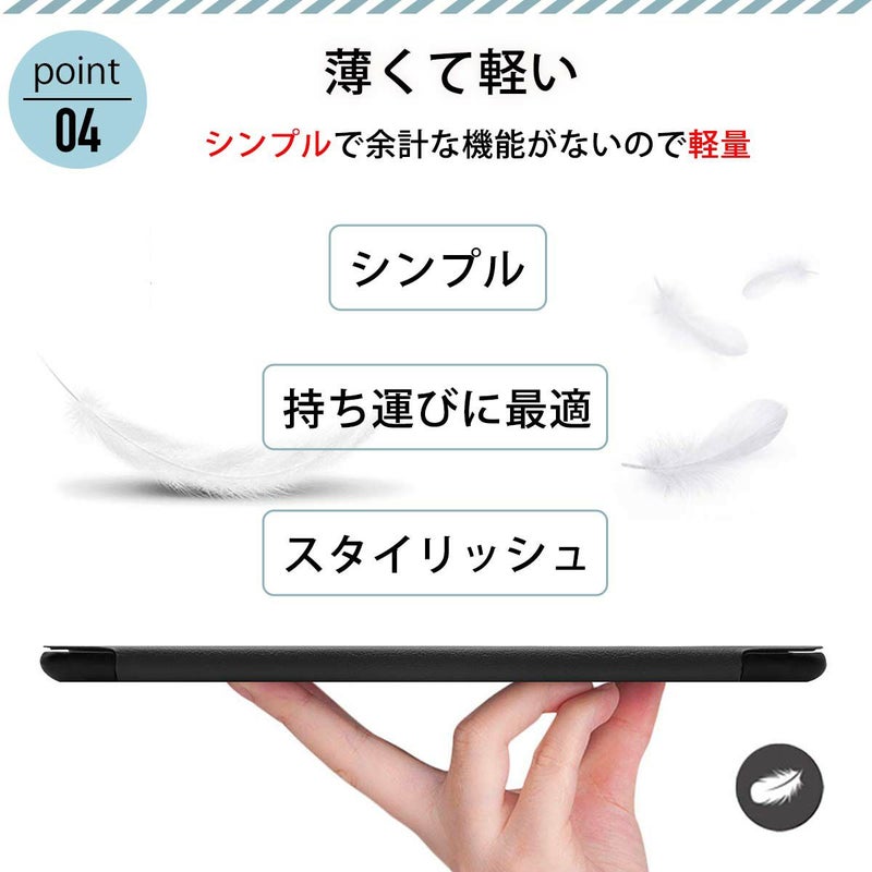 良質スリムデザイン、動画視聴時に便利なスタンド機能、三つ折りタイプ、画面保護