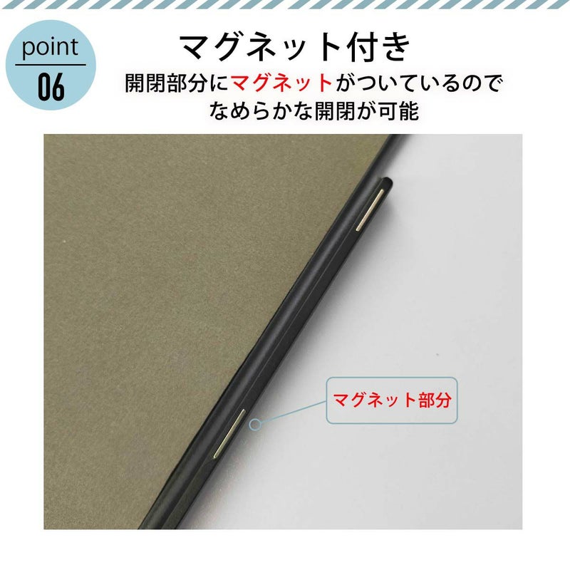 →画面保護フラップに本体に影響を与えない微力磁石が