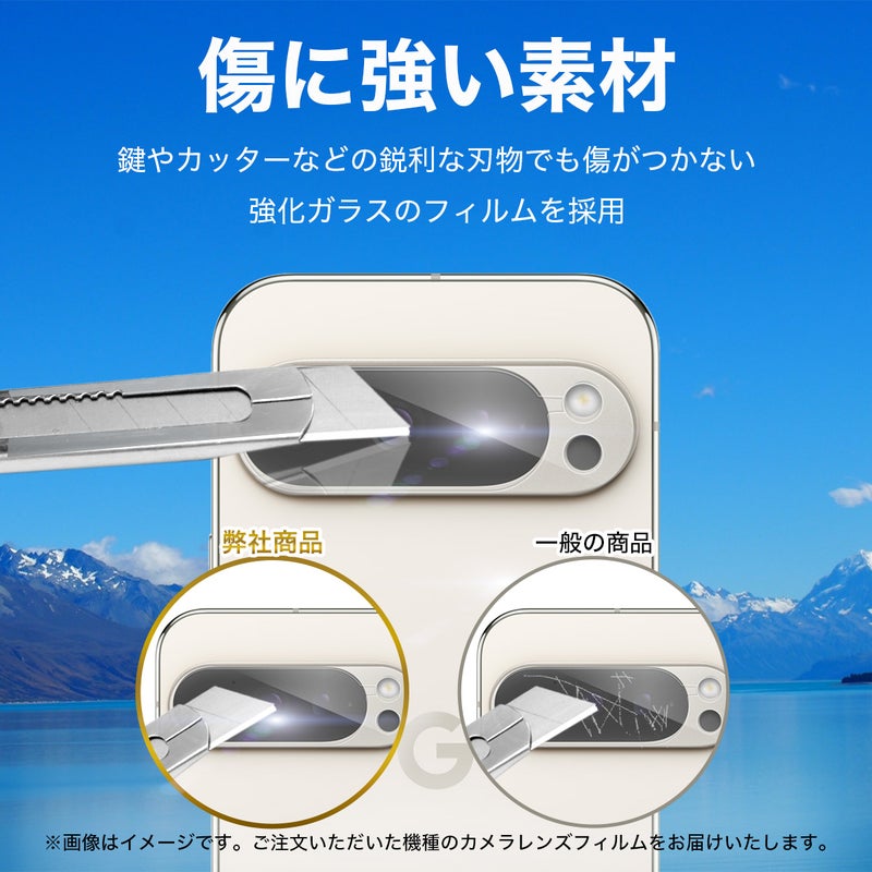 表面硬度10Hの強化ガラスを採用。鍵や小銭などによるキズから、大切なカメラレンズを守ります。