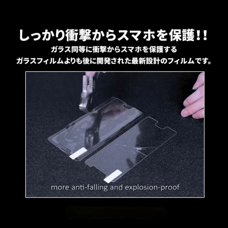 ガラスフィルムが割れて衝撃を吸収するのに対してフィルムがスマホ本体への衝撃を吸収します。