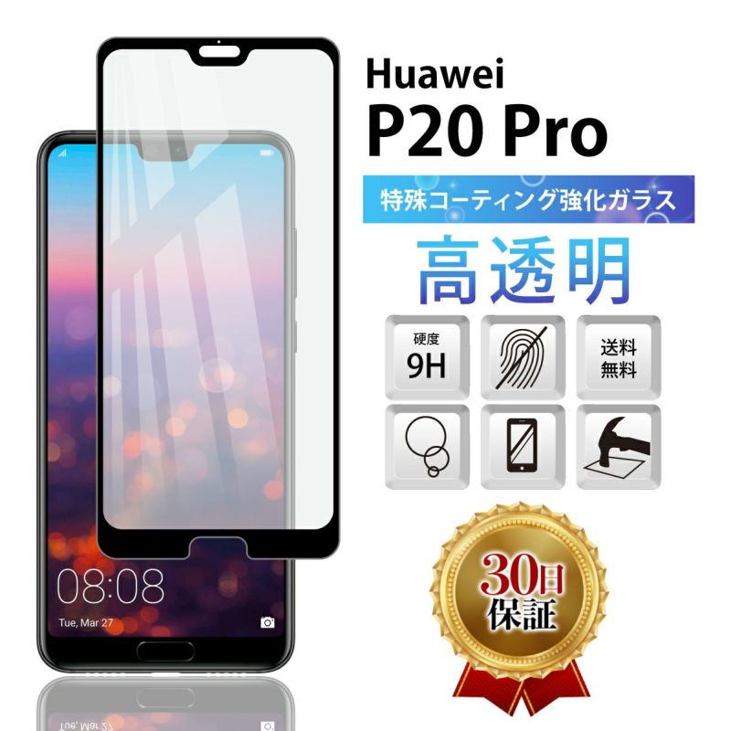 【気泡ゼロ 】貼り付け簡単!日本語説明書付 全面 フルサイズ Huawei P20 Pro ガラス 全面吸着 HW-01K フ