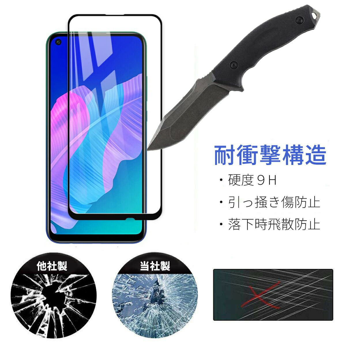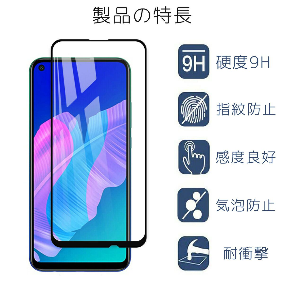 一般的なフィルムの3倍以上の最強硬度「9H」強化 ガラス スマホを守る 2.5D ラウンドカット 指紋防止 飛散防止