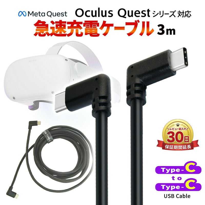 Oculus Questシリーズ全対応。ケーブル両端がType-C接続タイプで急速充電 Oculus Quest 1 2 オキュラス クエスト Met