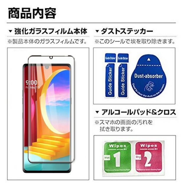 超薄0.3mm GLASS 全面を覆う フルタイプ LG VELVET ガラス 3D L-52A