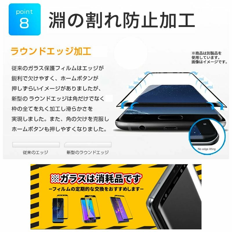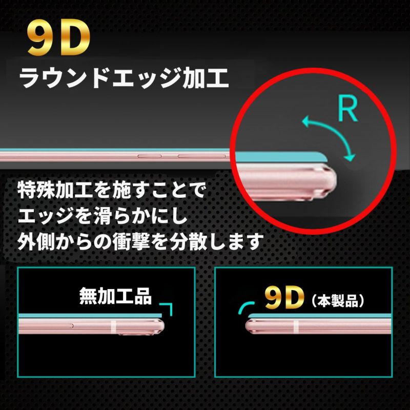一般的なフィルムの3倍以上の最強硬度「9H」強化 ガラス スマホを守る ラウンドカット 指紋防止 飛散防止