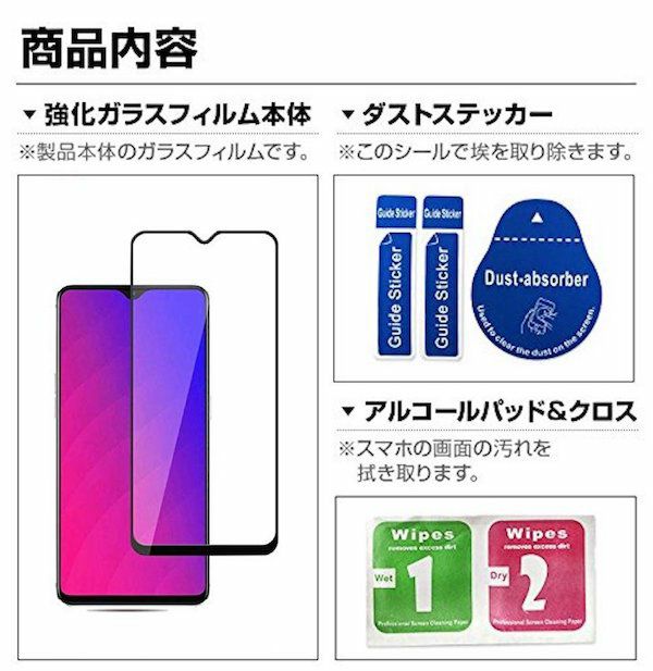 スマートフォンに淵面貼り付け Full Glass Film + 埃取りクロス シール セット ※30日間の安心保証サービス
