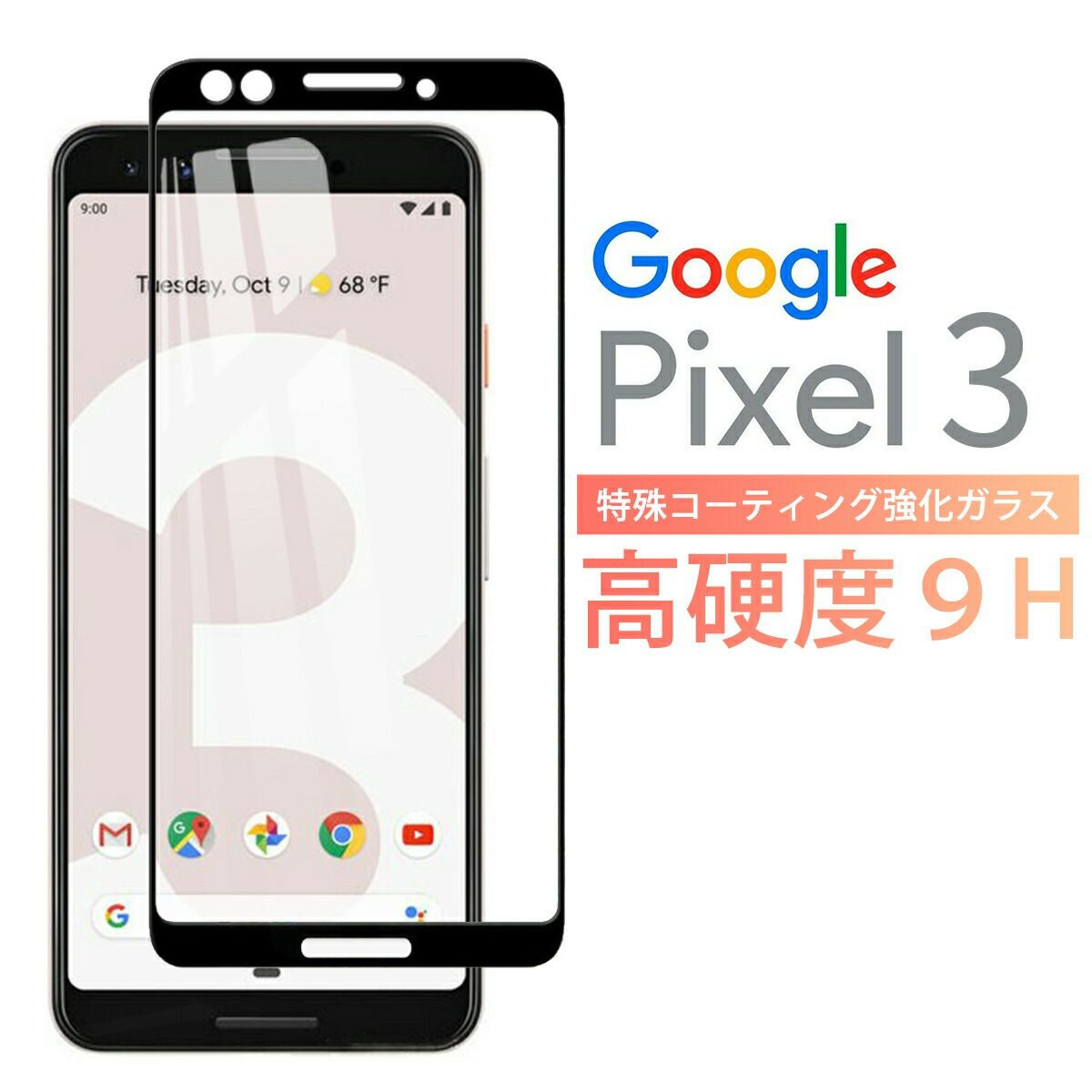 Google Pixel 3 ガラス 3D良好 クリア 黒