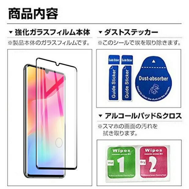 スマートフォンに貼り付け ガラスフィルム + 埃取りクロス シール セット ※30日間の安心保証サービス