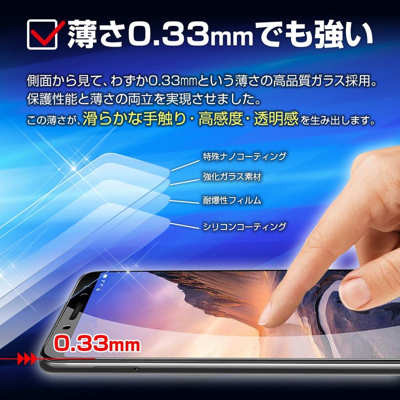 一般的なフィルムの3倍以上の最強硬度「9H」強化 ガラス スマホを守る 2.5D ラウンドカット 指紋防止 飛散防止