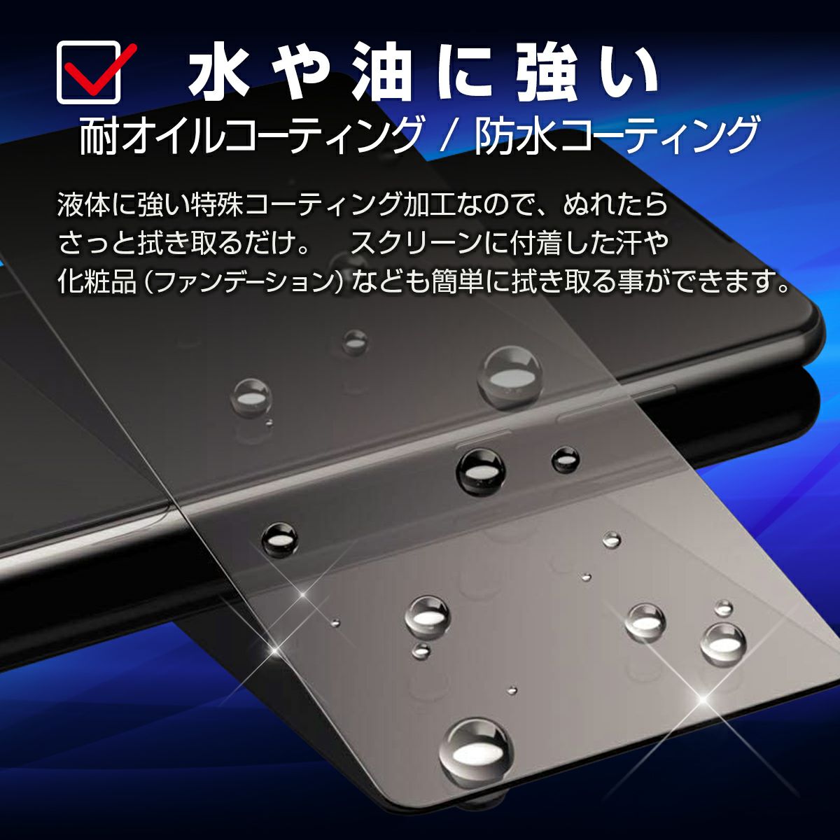特殊コーティングで油や水をはじき、付いた指紋も拭き取ることができます。