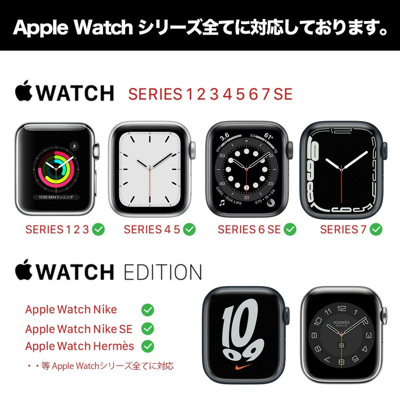 ・使いやすさと見た目を追求した幅広いシーンで活躍ができるアップルウォッチ全シリーズに対応。