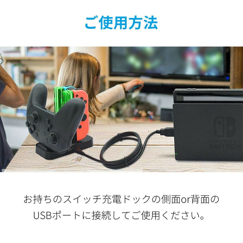 1.充電機能:ジョイコン4台同時充電可能。