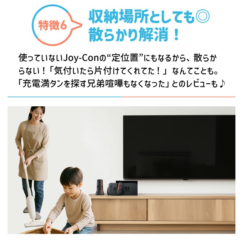 Joy-Conを最大4台同時に充電できるから、家族や友だちとのプレイにピッタリ!待ち時間ナシで遊べます。