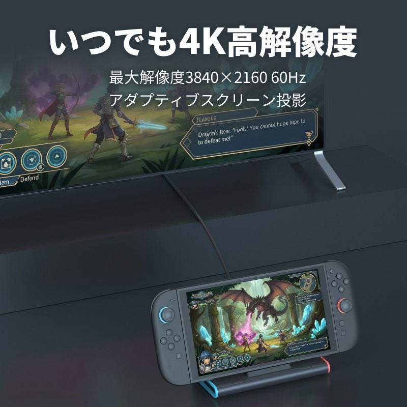 従来の大型ドックを使わず、Switch 2 を直接テレビへ出力可能。
