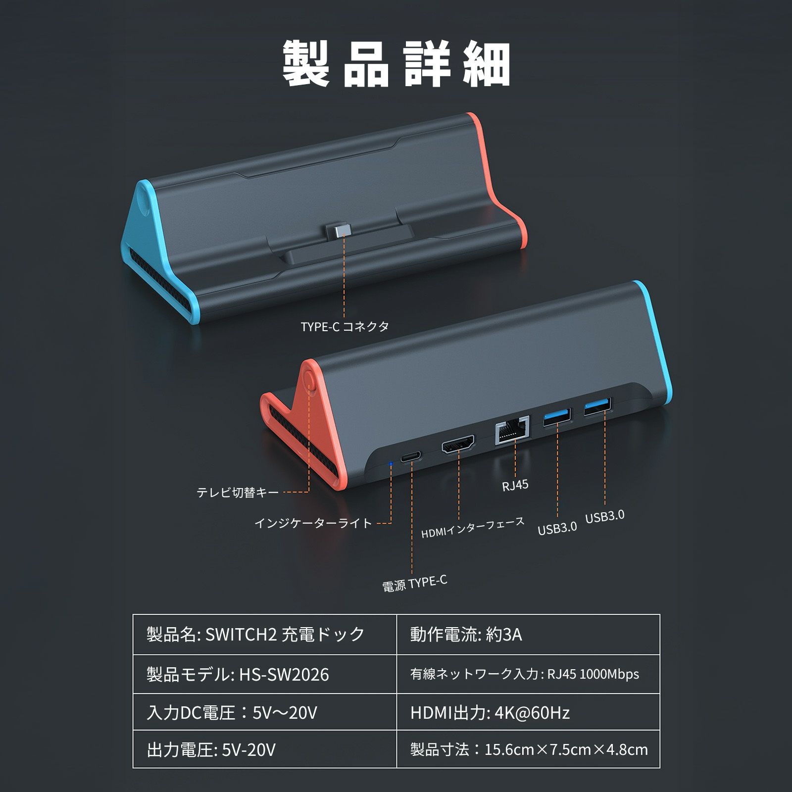 機能 ・任天堂 Switch 2 専用設計のTV出力対応充電ドック