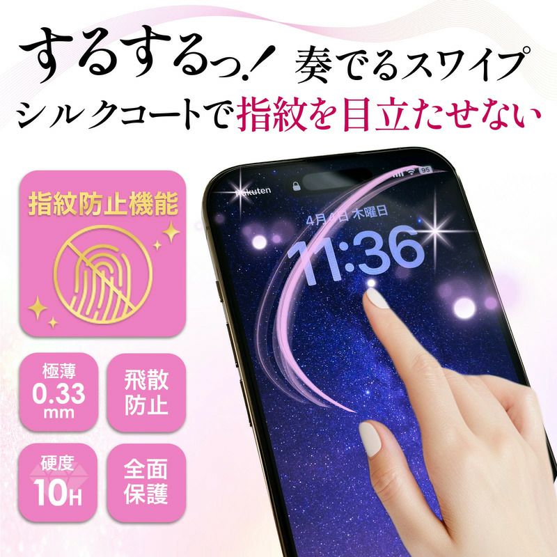指紋防止加工により、指紋がつかないさらさらとした画面を保ちます。