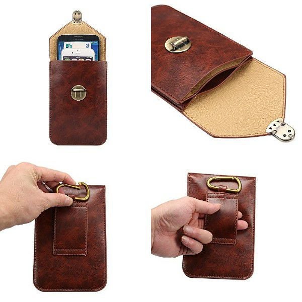 5.7インチまでのスマホを収納可能なビンテージ風ウエストポーチ