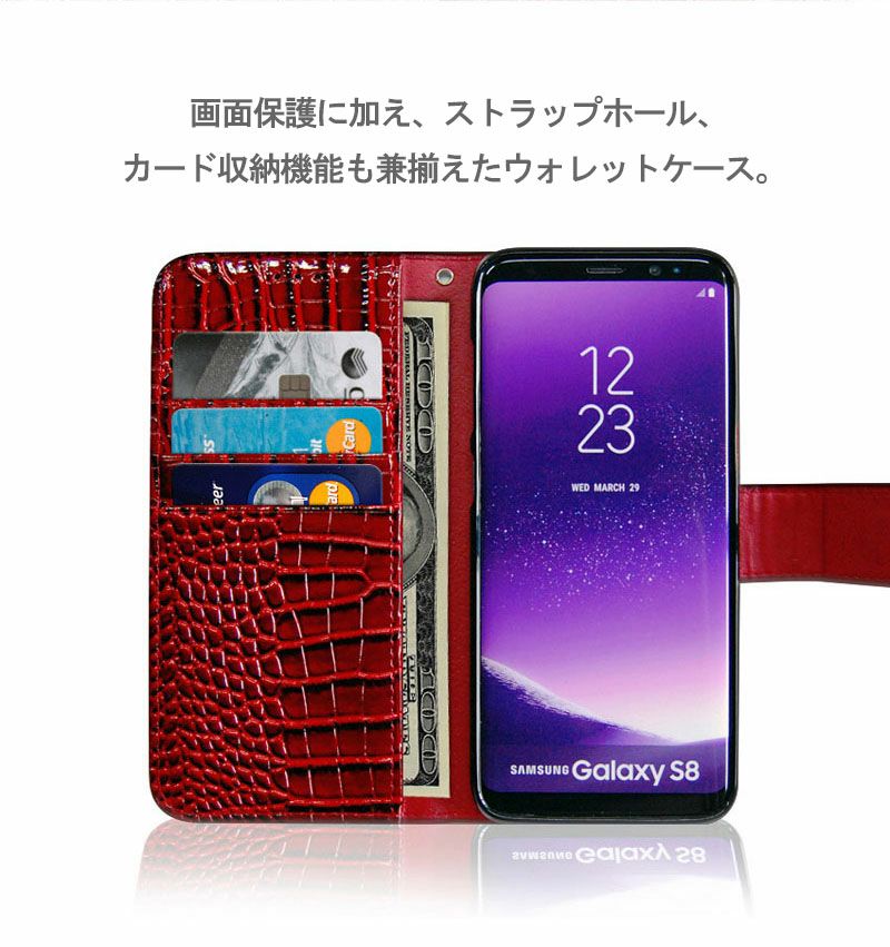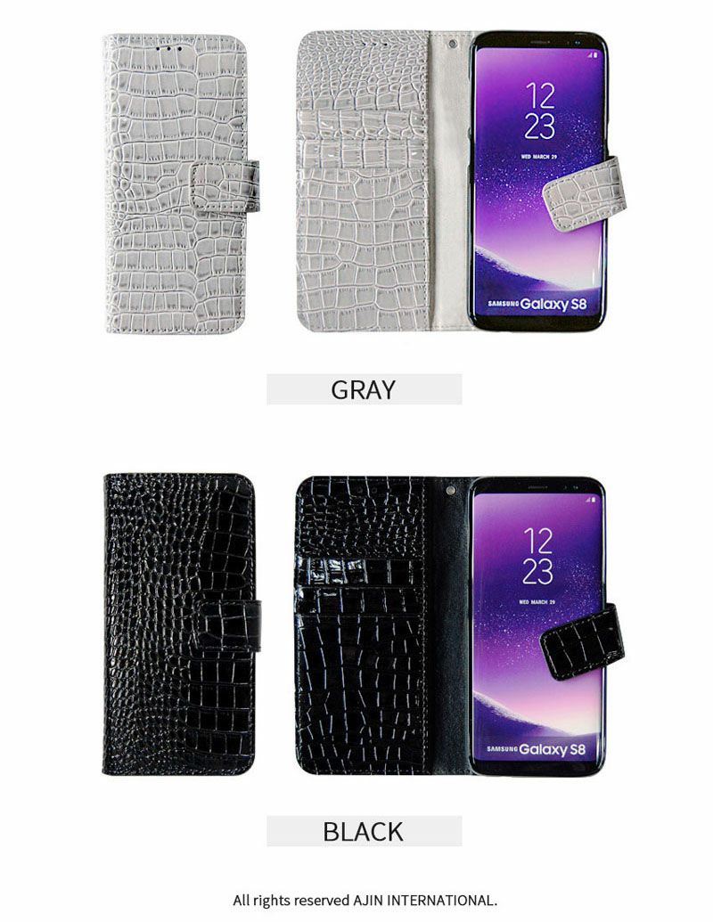 シンプルかつ重厚な手触り感 クロコ型押し 手帳型 スマホケース iPhone XS Max ケース Galaxy Note9