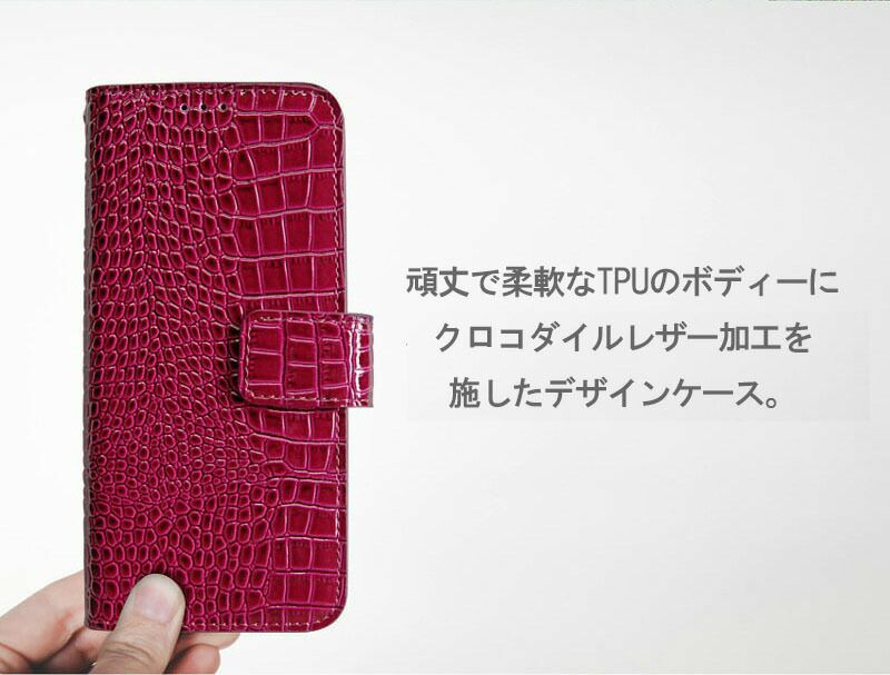 [特 徴] 手に馴染むクロコダイルデザイン、スマホを守る耐衝撃性