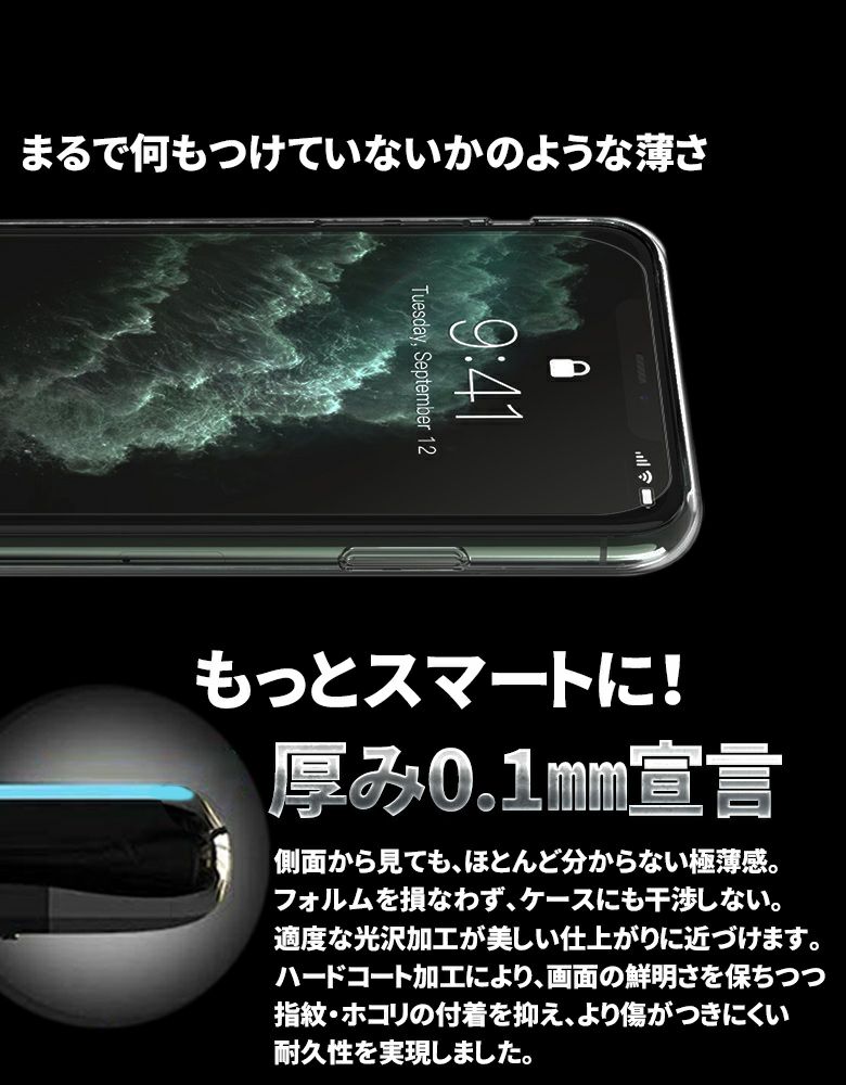 | 全面保護 高透明 3Dスムースタッチ 指紋防止 飛散防止 気泡軽減 |