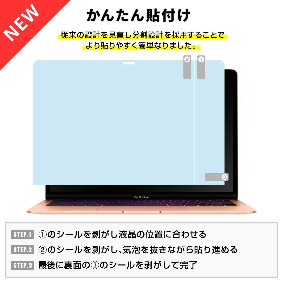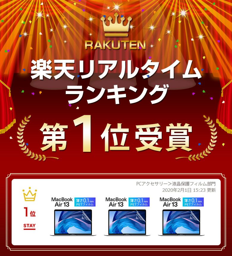 ? 対応機種 : MacBook Air 13 Retina ディスプレイ 13.3 ( 2018年 ) A1932 この1枚で画面を守る 高透過率 薄いPETフィルム