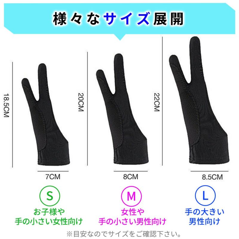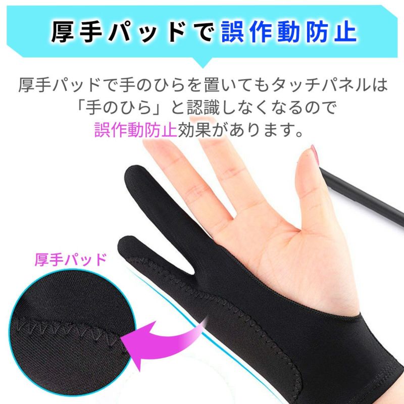 手とペンタブレット表面との摩擦を減らしスムーズな描画が可能に タブレット 手袋 グローブ 2本指 液晶 ペンタブレット カバ