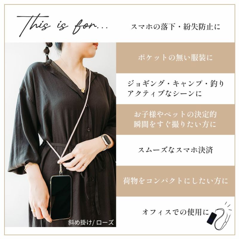 今使用しているケースがおしゃれなロングストラップ付きのケースに変身! スマホ 用 ストラップ ケース ホルダー ショルダー 紐 アタッ