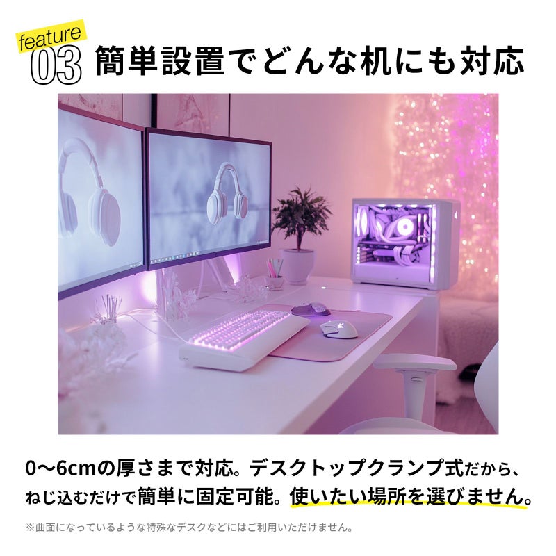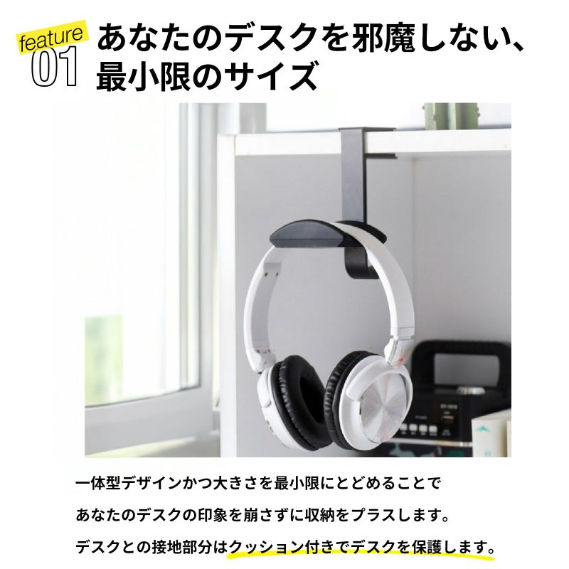 机に挟み、ヘッドフォンをかけることができます。