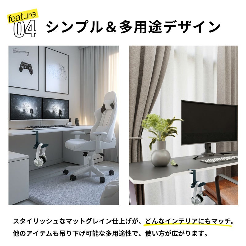 PC ゲーム スタンド ヘッドセット 机 デスク シンプル 工事不要 デスク用 ヘッドホンホルダー アイアン デスクトップ サイド デスク ラック 拡張 荷物 メタル ハンガー ゲーミング PC フック デスク フック クッション有 黒 引っ掛け 金具 フック おしゃれ ヘッドホン フック デスク カバン フック シングル フック ヘッドセット ホルダー ヘッドフォン ホルダー ヘッドセット ハンガー スタンド ホルダー バッグハンガー ブラック グレー
