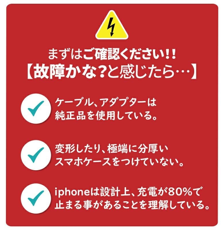 ※使用中に充電ができないなどの不具合が発生した場合、スマホケースをはずした状態で充電をお試しください。