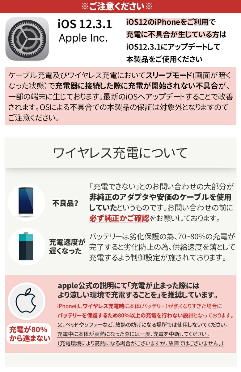 ・カバーの厚みや素材によっては充電が出来ない場合がありますので、その場合はカバーを外してお使いください