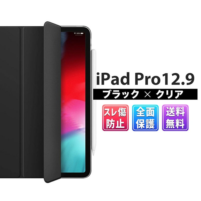 Apple ペンシル対応 iPad 2020 傷から画面を守る ハードケース 耐衝撃 持ち運び 軽量 クリア ブラック iPad Pro 12.9 対応 タブレット ハードケース クリ