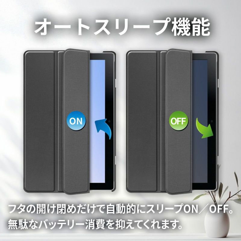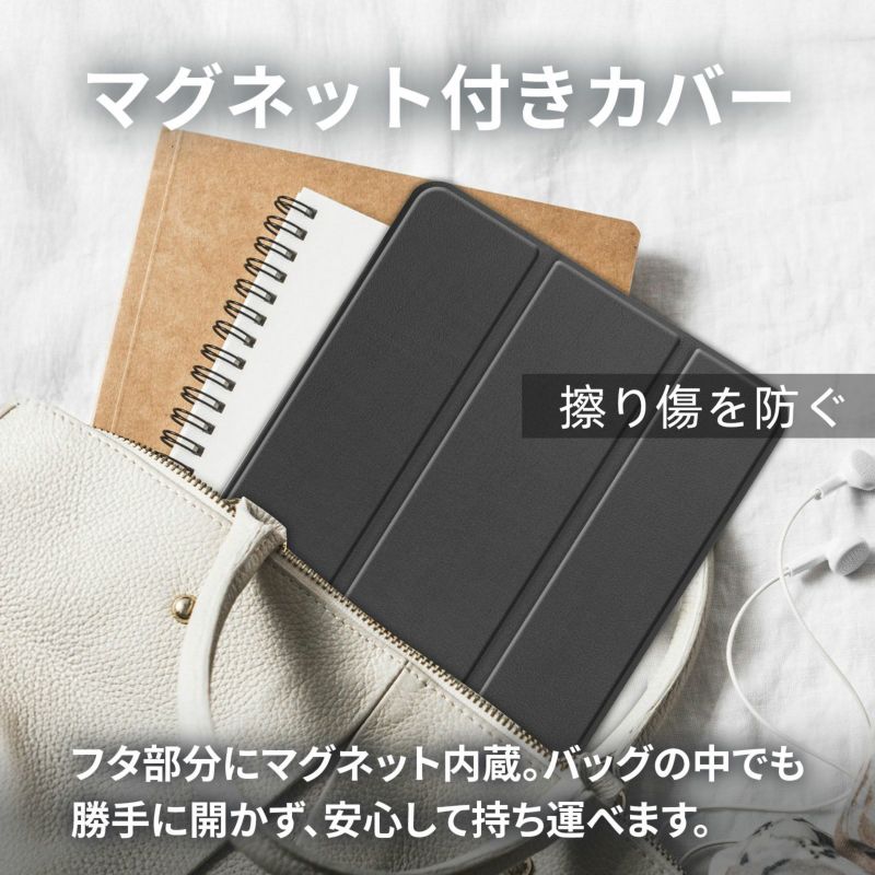 PUレザーとマイクロファイバーの組み合わせで、タブレットを傷や衝撃から守ります。