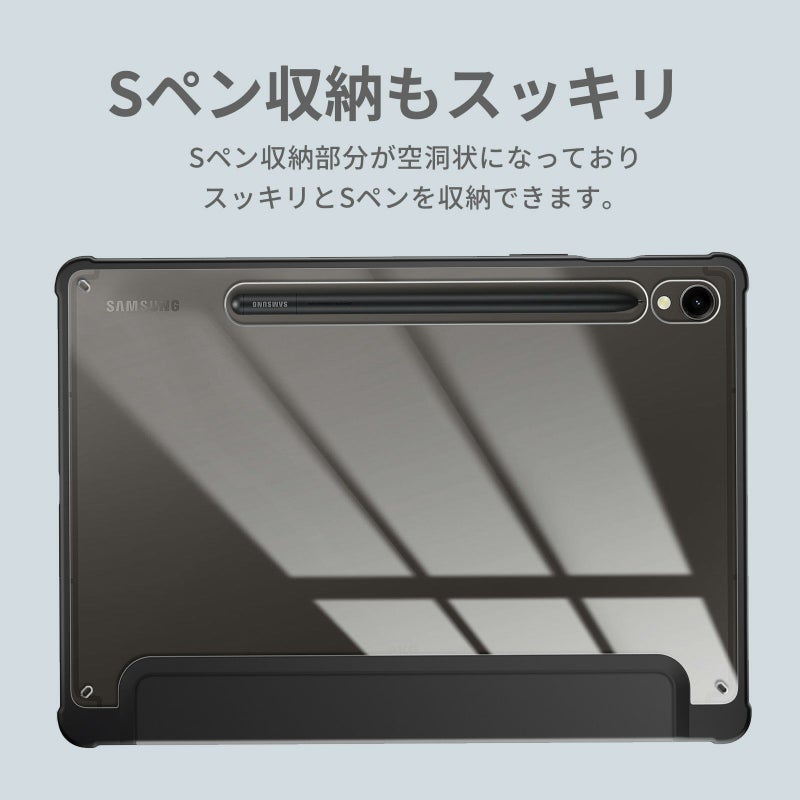 送料無料 シンプル機能 軽い おしゃれ amazon prime ネットフリックス Hulu YouTube オンライン 動画 タイピング リモートに最適 Galaxy Tab S9 ケース カバー タブレット ギャラクシー タブ エス9 フラップ マグネット内蔵 軽量 シンプル 保護 スタンド機能 旅行 学習 仕事 アウトドア ゲーム 車載 スリム 耐衝撃 スタイリッシュ 軽量 耐久性 Sペン タッチペン 黒 ブラック