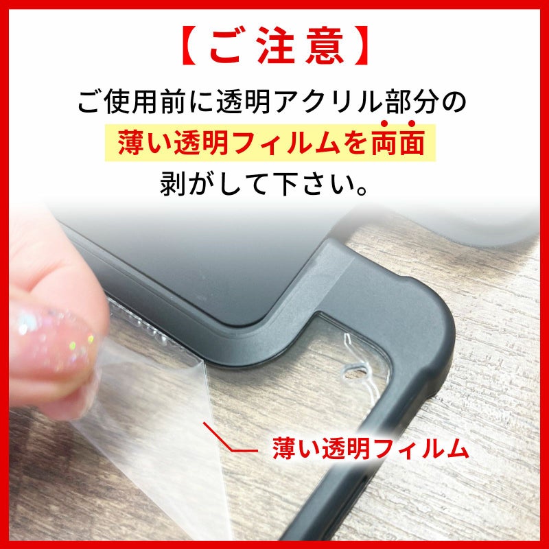 ご使用前に透明アクリル部分の薄い透明フィルムを