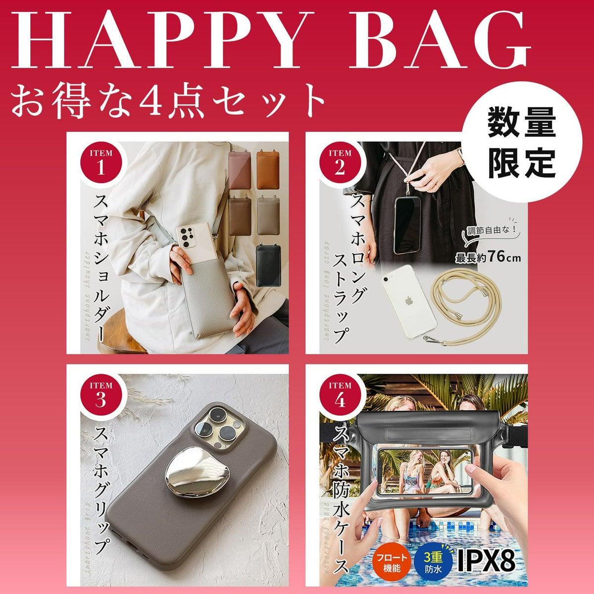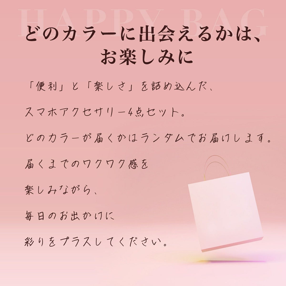 他の画像を見る 送料無料 あんしん保証 【福袋】 スマホをもっと楽しめる アクセサリーを詰め込んだ、限定の福袋です。 スマホ アクセサリー 福袋 セット HAPPY BAG レディース メンズ Apple iPhone Android Google Pixel グーグルピクセル スマホホルダー ショルダー グリップ ジッパー 会員登録で ¥ 1,000 から5%OFF 当店特別価格 ¥ 1,000 税込 会員特別価格 ¥ 950 税込 お気に入りに登録する